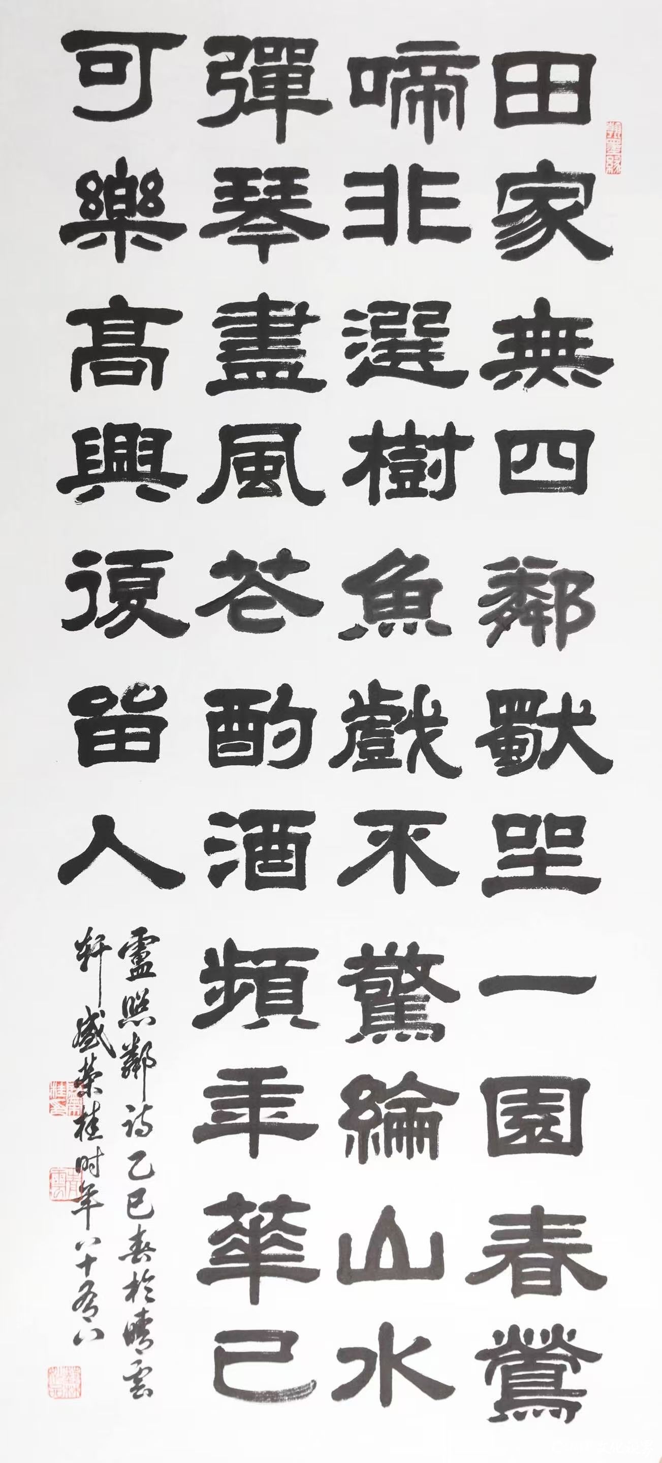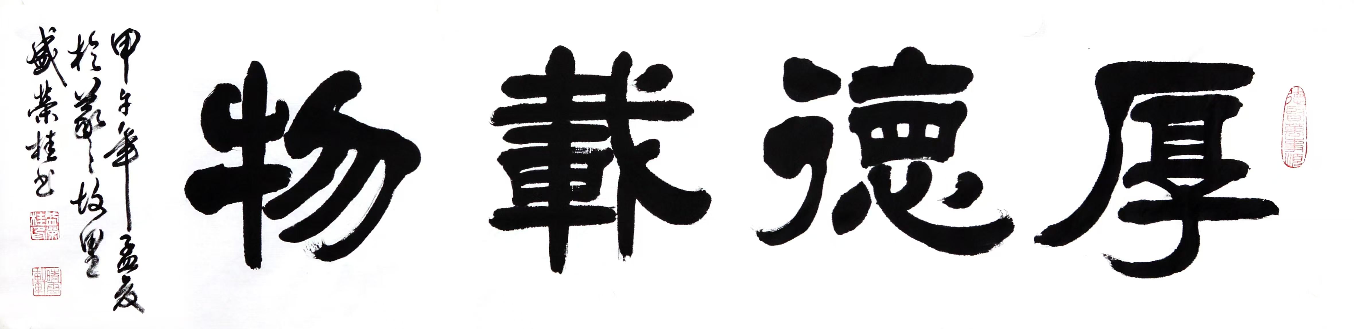盛先生之魏碑体楷书,既有欧体字的风骨,又吸纳了魏碑的笔韵,结体严谨而气势伟岸,抱气而不失灵动,笔画挺而纯正,入古而出古,实为难得。他的行书与草,初于端庄隽秀,笔劲有力,得其方圆兼备之法,尽显舒展潇洒之意。注重笔画之轻重、缓急、圆方、动静、刚柔,形成古拙朴茂,典雅灵动之美。厚重处孕育着静谧而博大之势,无雕饰而露纯朴,去妩媚而显刚正。