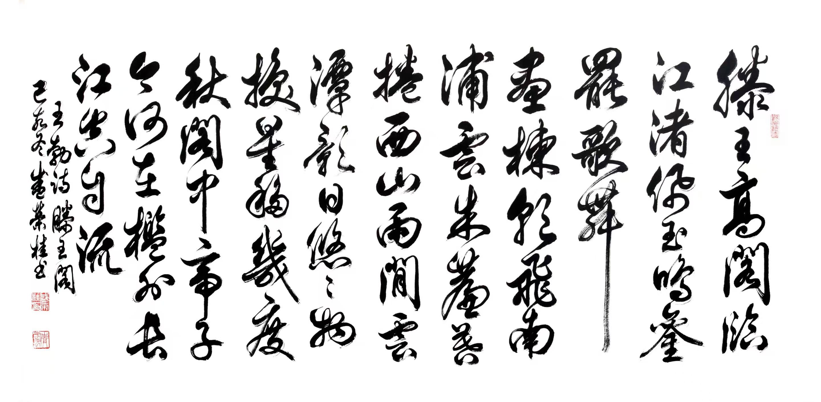 盛先生心性淡然,一片率真,融之于笔,追求章法。笔墨技巧和风格、意境,风行神妙,尽在自然之理,字体端庄、俊美,劲健,潇洒,在古典与现代之间找到了完美的契合点。