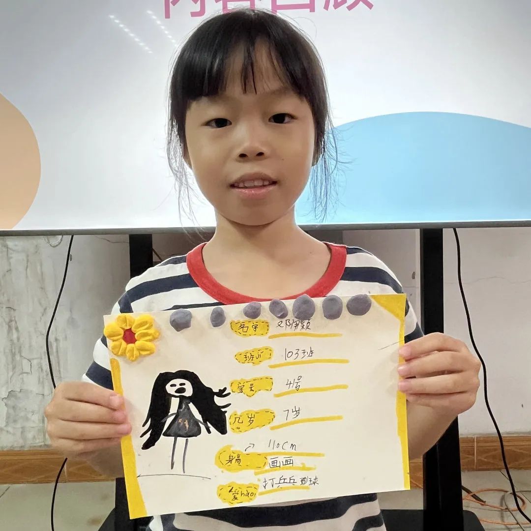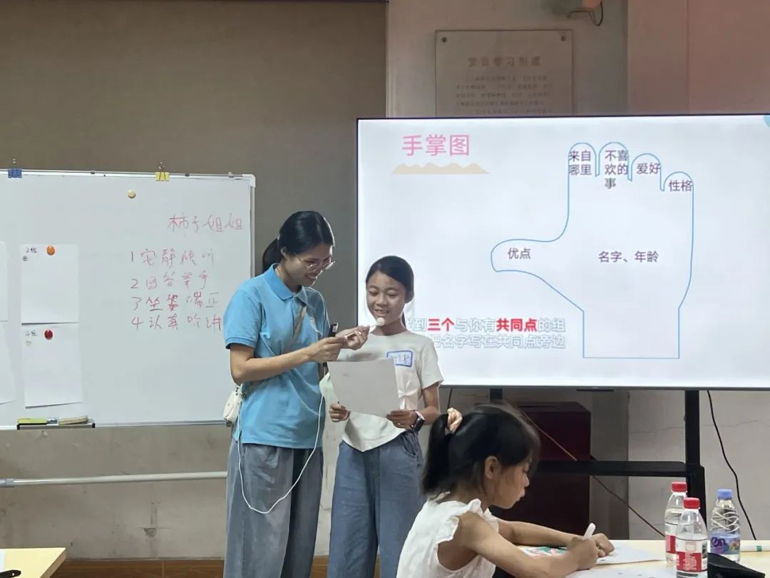 画手掌图深入介绍自己环节里,每个人用色彩与文字在手掌图上写上了自己喜欢的事情、性格、优点等,原本抽象的“自我介绍”变得生动又好记。